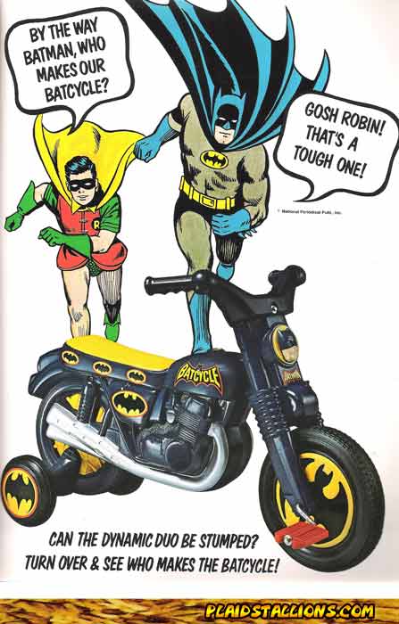 Another vintage toy industry ad, this time for the Empire Toys Bat Cycle. Think it has enough bats on it?