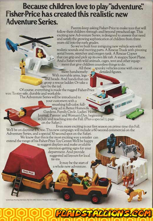 Aw man. My parents used to take me to Fedco religiously to get the latest FP Adventure People playsets. I think they really dug how realistic they were. And as far as playability? These things were my favorite toys by far. I had everything on that page except for the helicopter set...and so much more.