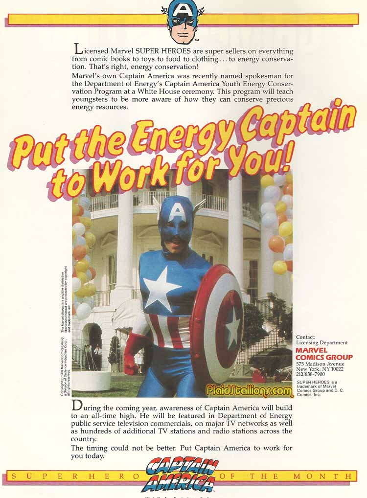 This ad for licensing Captain America products from 1981 is interesting not only to comic fans but also trek people ( can't remember if "trekkie" or "trekker" is offensive so I'll steer away from that controversy, thank you) as I'm 90% certain that's none other than Commander William Riker actor Jonathan Frakes under that ill fitting large cowl.