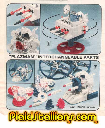 I've never seen or heard of "plazman" before, it looks like somebody's way of competing with the wonderful Micronauts line of toys. I figured somebody had this as a kid and it's been driving them crazy ever since, so here it is who ever you are...