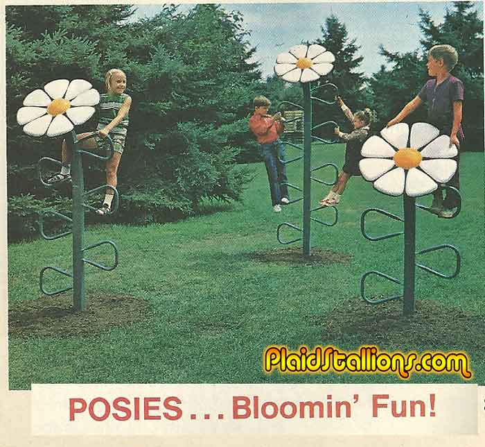Hey! My old hometown park had those flowers and that scarecrow double swing!! They might even still be there.. I'll have to find out.