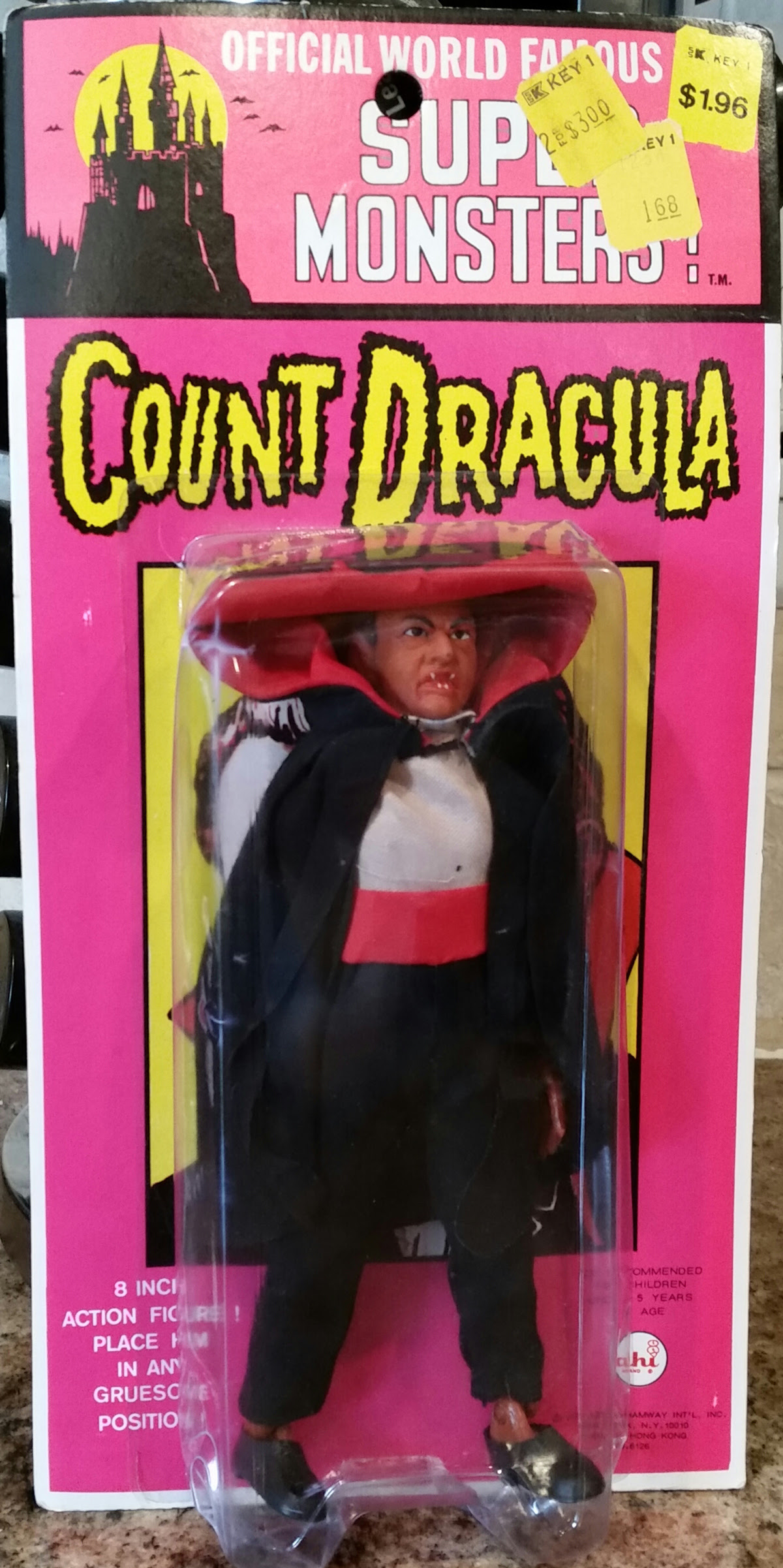 Dracula was sold in the AHI Official World Famous Super Monsters wave but in a way that distinguished him from the other monsters. The other monsters aren't mention on the card, nor are the monsters, just a huge portrait of Dracula.
